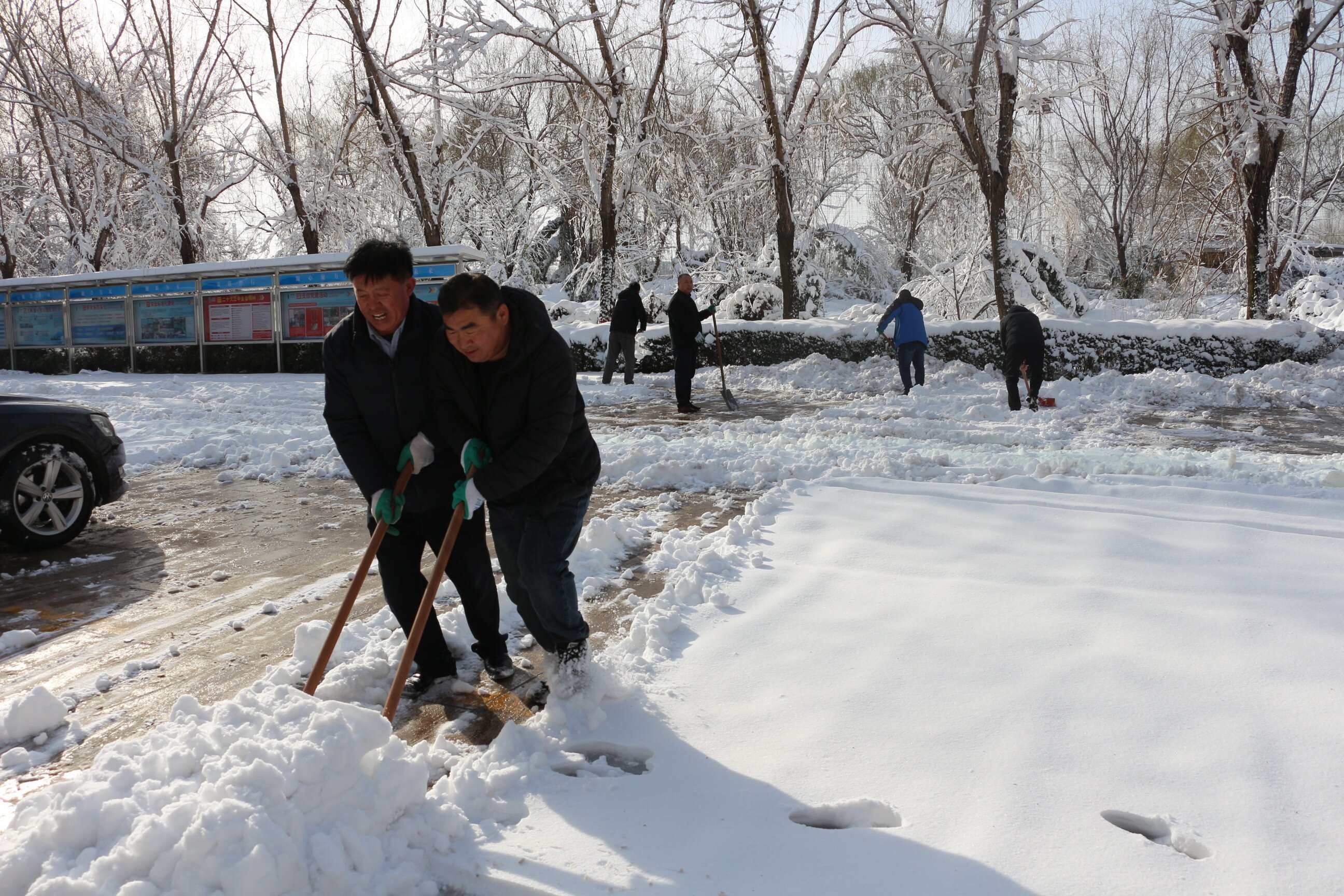在鄒平眾興廠區(qū),黨員干部帶頭手持推雪鏟、鐵鏟等清雪除冰設(shè)備,向大面積的雪面“進攻”,將通往辦公樓、化驗樓、食堂等路面作為重點清理區(qū)域。經(jīng)過2個多小時的協(xié)力奮戰(zhàn),路面基本清理干凈,為生產(chǎn)運行和員工安全出行提供有利保障。
